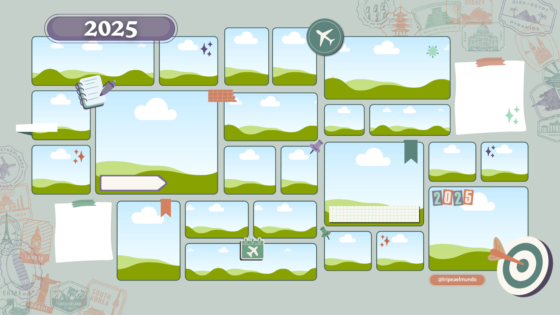 Es una herramienta creativa que te ayuda a visualizar tus objetivos del nuevo año para inspirarte y recordarte todo lo que quieres lograr! Si sueñas con explorar nuevos destinos, ahorrar para un viaje o crecer personal y profesionalmente, éste tablero puede ser tu guía visual hacia un año épico!